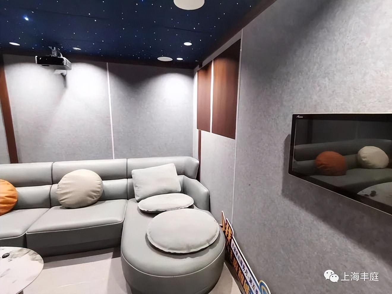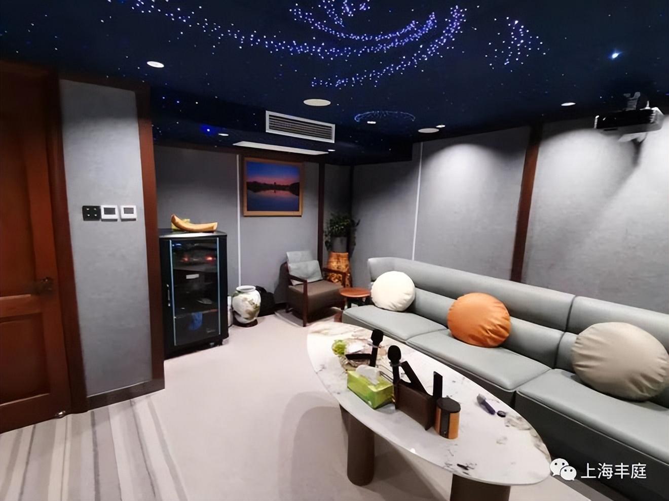 设计中考虑到让业主拥有更浪漫惬意的体验,于是将天花顶设计成星空顶,不仅增加了唯美的视觉冲击,更是利用了其声学功能,起到声场调节作用,有效减轻声扰,还原逼真的现场效果。
